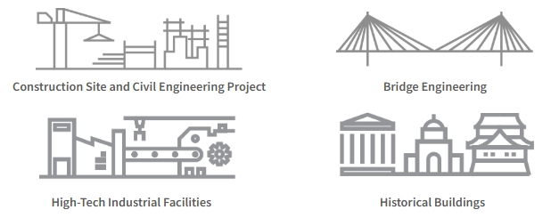 SHAKEdot integrates a Peak Particle Velocity (PPV) trigger function compliant with DIN 4150-3 and BS 7385-2 standards. It is designed for monitoring vibration impacts on structural safety, including construction vibration monitoring for urban civil engineering projects, bridge structures, high-tech industrial facilities, and historical buildings.