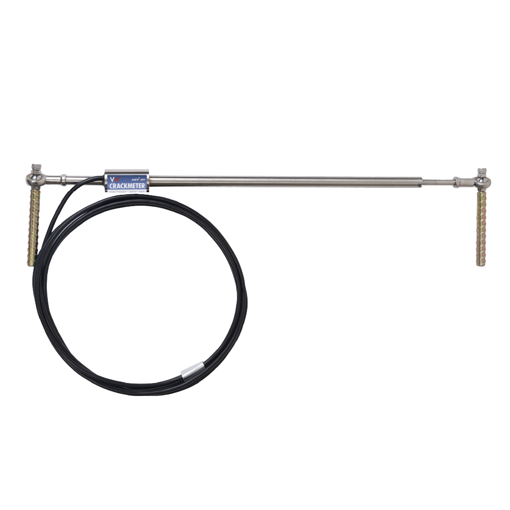 Enhance structural monitoring with the VW Crackmeter— a durable solution designed for precise crack measurement. Comprising a vibrating wire and a high-quality stainless steel tension spring, this instrument ensures reliable, long-term monitoring. With a special 4-core shielded cable, the VW Crackmeter maintains accuracy, unaffected by variations in cable length. Ideal for embedding in harsh conditions, it excels in prolonged monitoring periods. As cracks open or close, the connecting rod shifts within the transducer body, altering the tension on the spring and modifying the resonant frequency of the wire.